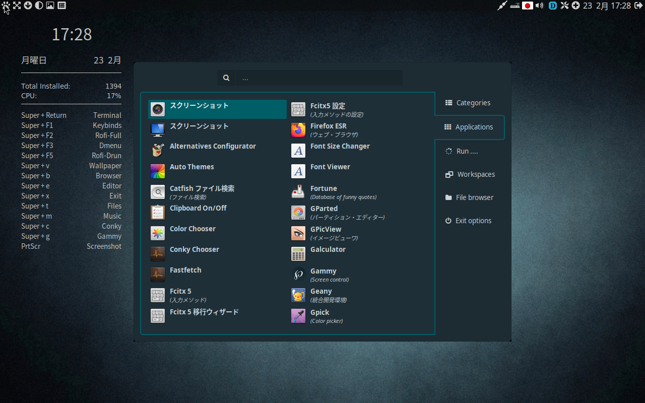 ![]() このところManjaroベースのディストリ(Garuda,Mabox)の紹介が続いたので本家を紹介しないわけにはいきません. Manjaroは10年前に一度紹介しましたがそれ以来放ったらかしていました. Manjaroは圧縮ファイルが複数に分れていて再構築が面倒なところがあり敬遠していました. (本当のところは再構築のやり方を忘れてしまった^^;) Garudaを機に再び関わろうと思った次第です. さて余談はこれくらいにして... Manjaro LinuxはArch Linuxから派生したディストリビューションです. ManjaroはArchのインストーラーやシステムツールをGUI化して初心者にもとっつきやすくしました. 現在のArchは十分GUI化されManjaroと遜色ありませんがManjaroの影響を無視できません. ManjaroとArchの関係はUbuntuとDebianの関係によく似ています. (注意) thunderbirdは日本語化していません.(Xfceの場合) インストール後全パッケージのアップデートをかけてからthunderbird-i18n-jaをインストールすると日本語になります. →ホーム Manjaro 22.0 : GNOME vs KDE vs XFCE (RAM Consumption) ニュース 2023.4.4 Mabox Linux 日本語版 ![]() Mabox LinuxはManjaroベースのディストリビューション. Maboxは軽量なディストリビューションですが、 軽量ディストリビューションにありがちな操作性がよくない、 カスタマイズしにくいなどの欠点がありません. [軽量] ウィンドウマネージャー→openbox パネル→tint2 ファイルマネージャー→pcmanfm 壁紙チェンジャー→nitrogen openbox+tint2は軽量ディストリビューションによくある組み合わせです. デスクトップの描画はpcmanfmが担っていますが、LXDEなどのDE(デスクトップ環境)は使っていません. [操作性] デスクトップで目につくのはショートカットキーの一覧です. 今更キーボードで操作するのは?と思うかもしれませんが、マウスの操作より楽で素早い操作ができます. ショートカットキーを覚えさえすればマウスのポインターの移動とクリックがまどろしく感じるようになります. むかしCrunchbangというショートカットキーの操作をメインとしたディストリがあり、人気がありました. ぜひショートカットキー操作にチャレンジしてみてください. superキー→ウィンドウキー super + t : ターミナル起動 super + f : ファイルマネージャー起動 super + w : ブラウザ起動 super + e : テキストエディター起動 super + g : 電卓起動 super + v : 音量調整 super + x : 終了 super + s : 設定メニュー表示 alt + f4 : ウィンドウクローズ alt + f5 : ウィンドウ最小化 alt + f6 : ウィンドウ最大化 ctrl + super + → : 右パネル ctrl + super + ← : 左パネル super : メインメニュー表示 super + alt + m : メニューアイテム設定 super + f1 : コマンドパレット .... メインメニューの表示にはパネルをクリック、マウス右クリック、superキー押下の3通りの方法があり、複数の操作方法があるのは便利です. また右パネル、左パネルでほとんどの機能を呼び出せます. [カスタイマイズ性] Maboxは一通りのアプリケーションは装備しています/ それ以外は[Add/Remove Software](Pamac) で簡単に行えます. 設定ツールは[Mabox control center],[Manjaro settings manager]と全般にわたる個々の項目の設定を網羅しています. 以上のことからわかるようにMabox Linuxは軽量、操作性、カスタマイズ性の三拍子がそろったディストリビューションです. →ホーム Mabox Linux Flawless Linux Experience | Just Keeps Getting Better ニュース 2023.4.2 Garuda Linux KDE(Drgonized) 日本語版 Garuda Linux Xfce 日本語版 ![]() Garuda LinuxはManjaro(arch)をベースとしたディストリビューションです. インド産です. Garudaとは古代インド神話に登場する半人半鳥の霊鳥ですがインドネシアのシンボルとなっています. →インドネシアのシンボル「ガルーダ」 それを受けてドラゴンの壁紙、夜のネオンサインのようなアイコンを使用しインパクトのあるデザインです. 最近のディストリはデスクトップにウェルカムウィンドウを開き、システムの様々な設定を行えるものが多くなりました. Garudaのものはとくに高機能です. 書ききれないほどの機能があり、全般をカバーし、ほとんどの操作・設定・管理はここから行えます. Steamの設定もありマニアックな一面もそなえています. btrfsファイルシステム,pipewireサウンドサーバーなどの最新のソフトウェアやChaotic-AUR独自リポジトリを備えています. Garudaには多くのエディションがあります. KDE,Xfce,MATE,GNOME,Cinnamon,i3wm,Sway,lxqt,Gaming,etc... (注意)最初にアップしたバージョンはレガシーBIOSではライブ起動しない問題がありましたが修正しました. →ホーム Garuda Linux KDE Dragonized Edition デザインや使い勝手は良好 ニュース 2023.3.29 Q4OS 4.11 Gemini tde(64ビット) 日本語版 ![]() Q4OSはDebianベースのディストリビューションです. tdeとはtrinity desktopのことでKDEの軽量バージョンです. KDEの旧バージョン3.5のフォークです. KDE 3.xは当時の標準のデスクトップ環境でした. 古いユーザーにはちょっぴり懐かしい感じがします. MATEに立場がよく似ています. 軽量シンプルに仕上がっています. 他に32ビット版およびplasma 64ビット版があります. (注意)インストー