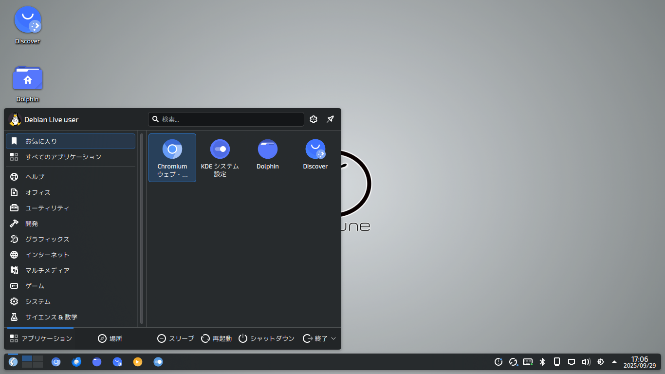 ![]() ![]() ニュース 2025.9.29 Neptune 9 日本語版 ![]() Neptuneはplasmaデスクトップを備えたdebianベースのディストリビューションです. シンプルなデスクトップとわかりやすい操作性を実現しています. 動作は軽快ですがメモリーは4GB以上必要です. →ホーム Review:Neptune 9(2025-09-17) ニュース 2025.8.24 SparkyLinux 8.0 lxqt 日本語版 ![]() SparkyLinuxがDebian 13(trixie)にベースになりました. SparkyLinuxはstable版とtesting版がありますがこれはstable版です. ファイル名にバージョン番号がついてるのがstable版、日付なのはtesting版です. SparkyLinuxには多くのデスクトップ版(MATE,Xfce,lxde,lxqt,openbox,KDE,jwm,enlighenment,budgie)がありますが、 そのなかでは軽量なlxqt版です. →ホーム SparkyLinux 8.0: Fast, Fresh, and Fueled by Debian 13 & Kernel 6.12! ニュース 2025.7.30 MODICIA O.S. 日本語版 ![]() MODICIA O.S.はマルチメディア系のディストリビューションです. マルチメディア系の豊富なアプリケーションを装備しています. オーディオ: Audacity, LMMS, Mixxx, QasMixer, QJackCtl, QJackRcd, QSynth, Rhythmbox, Sound Card Mixer, Sound Converter, Sound Juicer, Sound Recorder, ZynAddSubFx ビデオ: Astrofox, Avidemux, Cheese, Cinecred, Curlew, DCP-o-matic, DCP Player, Handbrake Imagenation, kdenlive, Mediarinfo, MKVToolNix GUI, Natron, OBS Studio Plus, Peek SlomoUI, Smplayer グラフィックス: FontForge, GIMP, ImageMossaicWall, Incscape, Krita, Photocollage, RawTherapee, Ristietto, Xnview DebianベースでデスクトップはCinnamonです. →ホーム Modicia OS Is Linux For Multimedia Power Users 注意 USBへの書き込みはVentoyを使用してください. 他のOS(Windows, Linux)とマルチブートしているときはbootメニューが出なくなるので、 ブートメニューを出すにはインストール後、 /etc/default/grubの11行目 #GRUB_DISABLE_OS_PROBER=false ↓ GRUB_DISABLE_OS_PROBER=false へ変更してから、sudo update-grubを実行します. ニュース 2025.6.20 natureOS de 1.0 ![]() natureOS deはdebianベースのnatureOSです. natureOSはBasixをベースに、natureOS deはBasix deをベースに開発しています. natureOSは独自の考えに基づいてUI(User interface)を設計しています→ Kona Linuxの高音質を実現するツールkonahqss(Kona Linux High Qulity Sound System)を組み込んでいます. したがって natureOSは操作しやすく高音質なディストリビューションです. 注意)ライブ起動時のユーザーIDとパスワードはnatureos/liveです ニュース 2025.6.18 Basix de 4.0 ![]() Basix de(debian edition)がdebian 13(trixie)ベースになりました. Basix deは「シンプルイズベスト」を標榜しています. アプリケーションは最小限にとどめ、ユーザーが好みのアプリを追加することを前提としています. 一方、サービスデーモン、システム/設定ツールは必要十分なものを装備しています. 結果としてユーザーはアプリケーションだけに集中でき余計なことに時間を取られません. Basix deはユーザーのカスタムディストリビューションを作成するツールを備えています. Basix deをベースにしてユーザー独自のディストリビューションを作成できます. デスクトップ上の「myディストリ作成のヒント」にやり方が記述してあります. 2025.6.20のニュースにあるnatureOS deはBasix deをベースにこのようなディストリビューションが作れるという実例です. 注意)ライブ起動時のユーザーIDとパスワードはbasixde/liveです ニュース 2025.6.12 Kona Linux 8.0 ![]() (注)conkyはデフォルトでは表示されません Kona Linux 8.0がリリースされました. Debian 13 trixie ベースです. Debianのバージョンアップに合わせて、Kona Linuxは2年ごとに新バージョンが出ます. 前回は2023年6月にKona Linux 7.0が出ました. 次回は2027年6月にKona Linux 9.0が出ると予想されます. Kona Linux 8.0は音質面では7.0を継承していますが、サーバー機能とレンダラー機能が大幅に強化されました. たとえば、roonサーバー、Audirvana-studioサーバー、HQPlayerレンダラー、Diretta Host、Airplayレシーバーなどです. その結果あらゆる音楽シーンでKona Linuxの高音質が利用できるようになったといいます. リリースノート Kona Linuxについて「はじめにお読みください」 (注)ダウンロードはgoogleにログインするとスムースに行なえます. ニュース 2025.5.26 LastOSLinux 日本語版 ![]() LastOSLinuxはWindowsに似たデスクトップを持つディストリビューションです. Windowsライクなディストリビューションはほかにも多くありますが、 長所はWindowsユーザーがLinuxに移行するとき違和感がないことでしょうか. しかし似てるのは見た目だけで中身は完全なLinuxです. LastOSLnuxはWindowsライクなアイコンとメニューを持ちます. ベースはLinuxMintでデスクトップはCinnamonです. Windwosユーザーにおすすめします. ホーム LastOSLinux ニュース 2025.4.28 Elive 3 日本語版 ![]() Elive(イーライブまたはエリブ)はウィンドウマネージャーにEnlighenmentを採用したディストリビューションです. enlightenmentときくとbodhi linuxが思い浮かびますが、それよりずっと古くから開発されているディストリビューションです. bodhiはenlightenmentの軽さを活かして軽量を売りにしていますが、Elveはenlightenmentのデスクトップ効果を利用して、 モダンでクールなデスクトップを実現していま