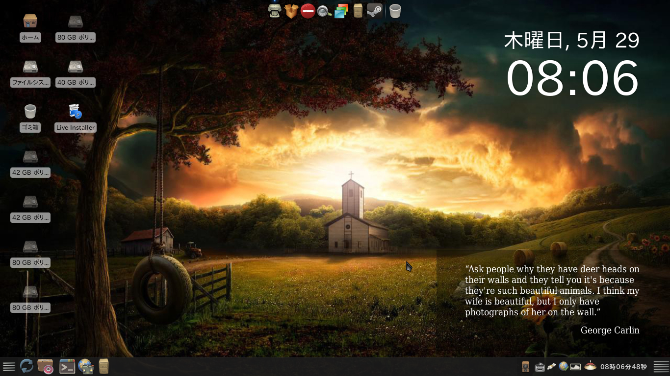 ![]() Basix de は2.0でdebian 11(bullseye)ベースになりました. Basix deはBasixのデビアン版です. Basixはユーザーがカスタマイズすることを前提にしてアプリケーションがほとんどインストールされていません. 反面サービスやデーモンは必要なものはすでに動作していてユーザーがアプリケーションだけに集中できるようにしています. リリースファイル basix-de-2.0_x86_64.iso ........ 64ビット UEFI環境版 basix-de-2.0-legacy_x86_64.iso ... 64ビット レガシーBIOS環境版 basix-de-2.0_i386.iso .......... 32ビット レガシーBIOS環境版 basix-de-2.0-hifi_x86_64.iso ... 64ビットHifi UEFI環境版 [2021/12/21追記] Basix de(64ビット), Basix de hifiにおいてbluetoothのaptX,LDACに対応しました. また「Myディストリ作成のヒント」を添付しました. ニュース 2021.6.10 ArcoLinux 日本語版 ![]() ArchLinuxはインストーラーがテキストベースだったりGUIのパッケージ管理システムがなかったり、 他のディストリに比べるとプリミティブな印象が強く初心者は手が出しにくかったですが、 その間隙をぬってarchから派生したarchよりはるかに近代的なManjaroがシェアをのばしました。 しかし最近のArchlinuxはEndevaourOS,ArchmanをみるとわかるようにGUIインストーラー、GUIパッケージマネージャーは当たり前で 多くのデスクトップ環境を用意し、今までのArchLinuxとは大きなイメージチェンジを果たしています。 泥臭かったDebianがUbuntuの影響で近代的なディストリになった(異論はあるでしょうが)のによく似ています。 さてそんな最近のArchLinuxの中で、カスタマイズ性に優れ完成度の高いデスクトップをもつArcoLinuxを紹介します。 GUIインストーラーは定番になっているCalamaresインストーラー、シンプルでわかりやすく多くのディストリビューションで採用されています. ArcoLinuxではインストールするアプリケーションを事細かく選ぶことができます. 分野ごとに一覧表示されるのでチェックを付けるだけの簡易さです. 豊富なアプリをプレインストールしてあるArcoですがオフィススィートはなかったのが不思議でしたが インストール時にインストールすればいいと考えたのでしょう. 普段常用しているソフトはここで選べばいいと思います. もちろんインストール後にパッケージマネージャーで必要なソフトをインストールしてもいいわけです. インストールできるのはアプリだけなく、驚いたことにデスクトップ環境やウィンドウマネージャーを選ぶことができます. 複数選択できるのでマルチデスクトップも可能です. DEやウィンドウマネージャーはインストール後に次に説明するArcoLinux Tweak Toolでも追加できます. またディスプレイマネージャー(ログインマネージャー)を選ぶことができます. デフォルトのSDDMにしたらなかなかおしゃれなログイン画面になりました. 独自のカスタマイズツールとしてArcoLinux Tweak Toolがあります. このツールではすでに話したようにデスクトップ環境とウィンドウマネージャーを追加できます. (追加できるDEとWM) awesome,bspwm,budge,cinnamon,cwm,deepin,fwm3,dwm,gnome,herbstluftwm,i3,icewm, jwm,lxqt,mate,openbox,plasma,qtile,spectrwm,ukui,xfce,xmonad などよく知られたものからきいたことがないものまで多くあります. それ以外では NeoFetchの表示項目カスタマイズ grubブート画面背景のカスタマイズ リポジトリの有効・無効 ...などです. conkyのconfigファイルはすでに多くが登録されていて一覧から選択するだけで切り替えることができます. 壁紙のオートスィチャー、ロックスクリーンのカスタマイズなどデスクトップの操作が楽しくなる機能が満載です. ブラウザはfirefox,chromium,vivaldiの3つも用意されていて好みのものを使えます. 足らないものはインストール時に追加すればいいのです. (注意) システムのアップデートをするとパッケージが競合するエラーが出ます. betterlockscreenとbetterlockscreen-gitの間で起こります. 解決するにはbetterloackscreenを再インストールしてから sudo pacman -S betterlockscreen 再度アップデートを試みます. sudo pacman -Syu するとbetterlockscreenとbetterlockscreen-gitが競合するのでbetterlockscreenを削除するか聞かれるので削除を許可します. ここで削除してもアップデートの中で再インストールされるので大丈夫です. →ホーム 参考になる日本語記事→Arcolinux 20.7 リリース ! 〜Archベース 軽快・高機能・最新Arcolinux(Xfce 4.14 desktop)を検証・整理する! ArcoLinux | Review and Final Thoughts ニュース 2021.5.25 Basix DE 1.0 HiFi ![]() Kona cofeeさんがkona linuxのサウンド・システムをパッケージ化してくれました. これによってKona Linuxの高音質なサウンドを他のディストリでも気軽に楽しむことができます. さっそくBasix de(debian edition)に導入してみました. UbuntuベースのBasix hifi版と同じくBasix DEの高音質版Basix DE hifiです. 更新情報の[2021/5/25]を参照してください. ニュース 2021.5.24 Bodhi Linux 6.0 日本語版 ![]() Bodhi LinuxはUbuntu 20.04ベースの軽量なディストリビューションです. リリースが遅れたのはBodhiBuilderの対応が遅れたせいでしょうか? (BodhiBuilderの20.04対応版はまだ公開されてい